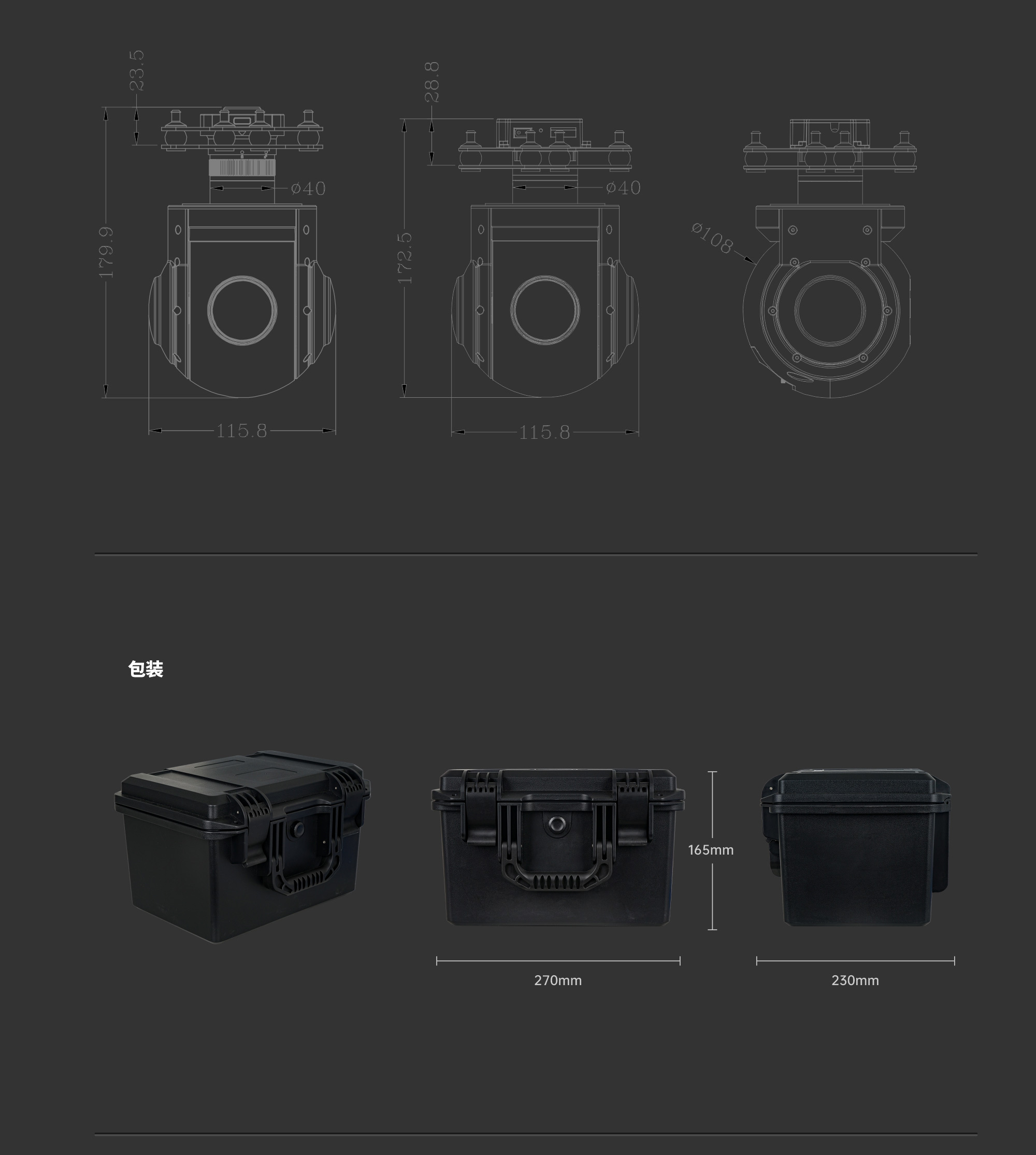 | 产品尺寸 | 115.8*103.5*181.3mm(普通版) / 115.8*103.5*167.3mm(快拆版含快拆) |