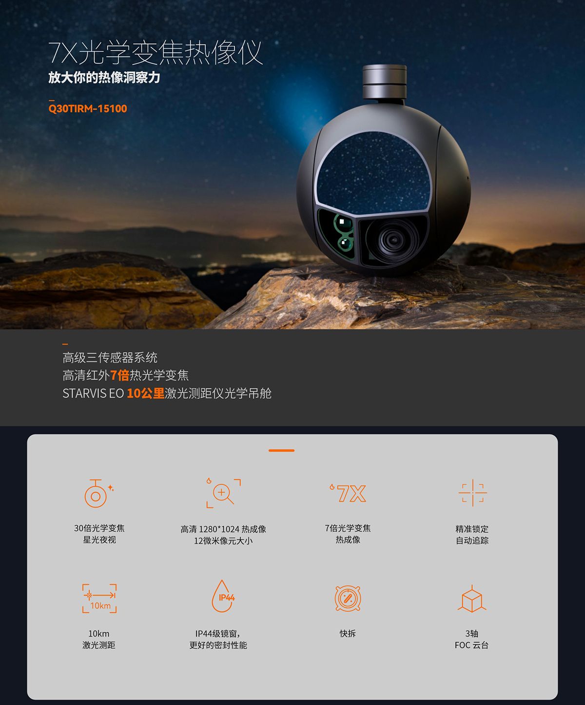 Q30TIRM-15100 7倍光学变焦热像仪 三光三轴设计吊舱