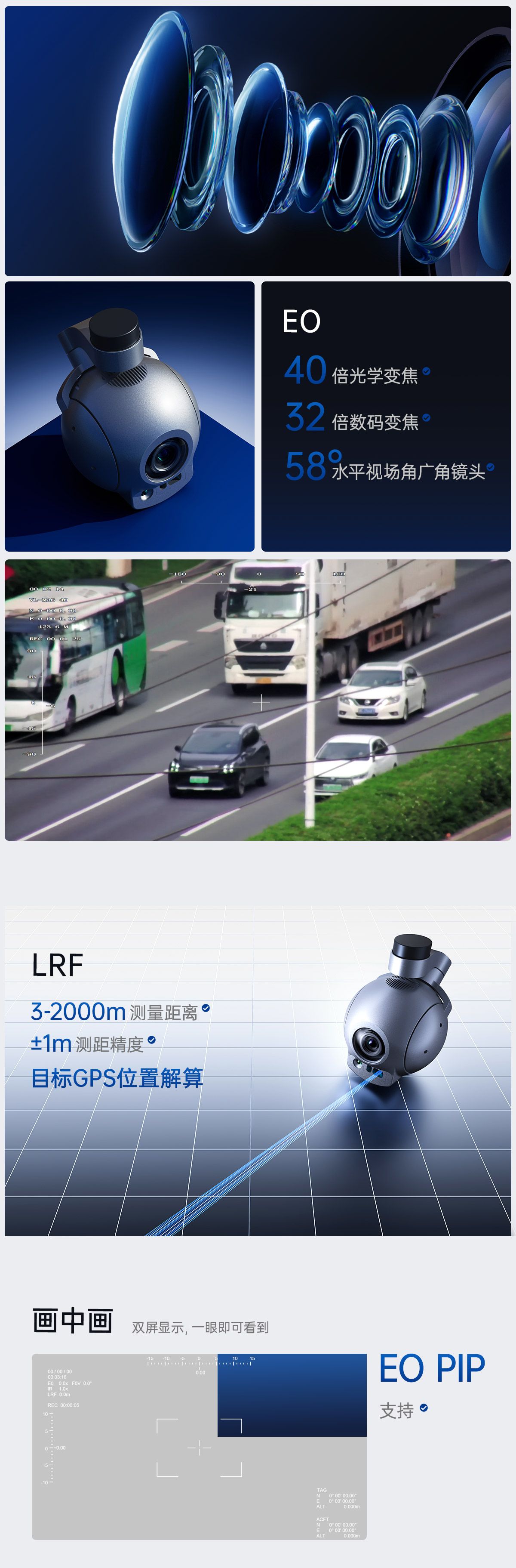 Q40TM PRO 高精度 40倍变焦 目标位置解算和自动跟踪吊舱