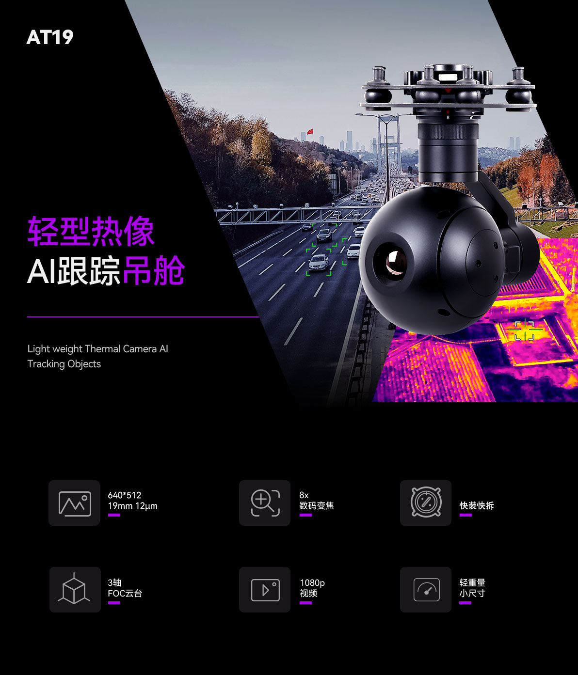 A10T Pro 10倍轻型双光AI目标识别跟踪吊舱 三轴热像仪