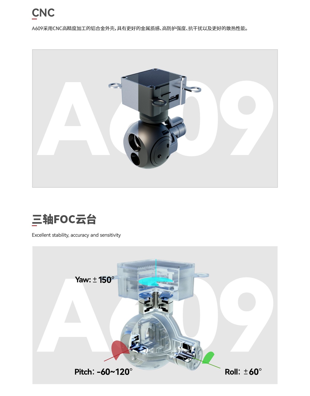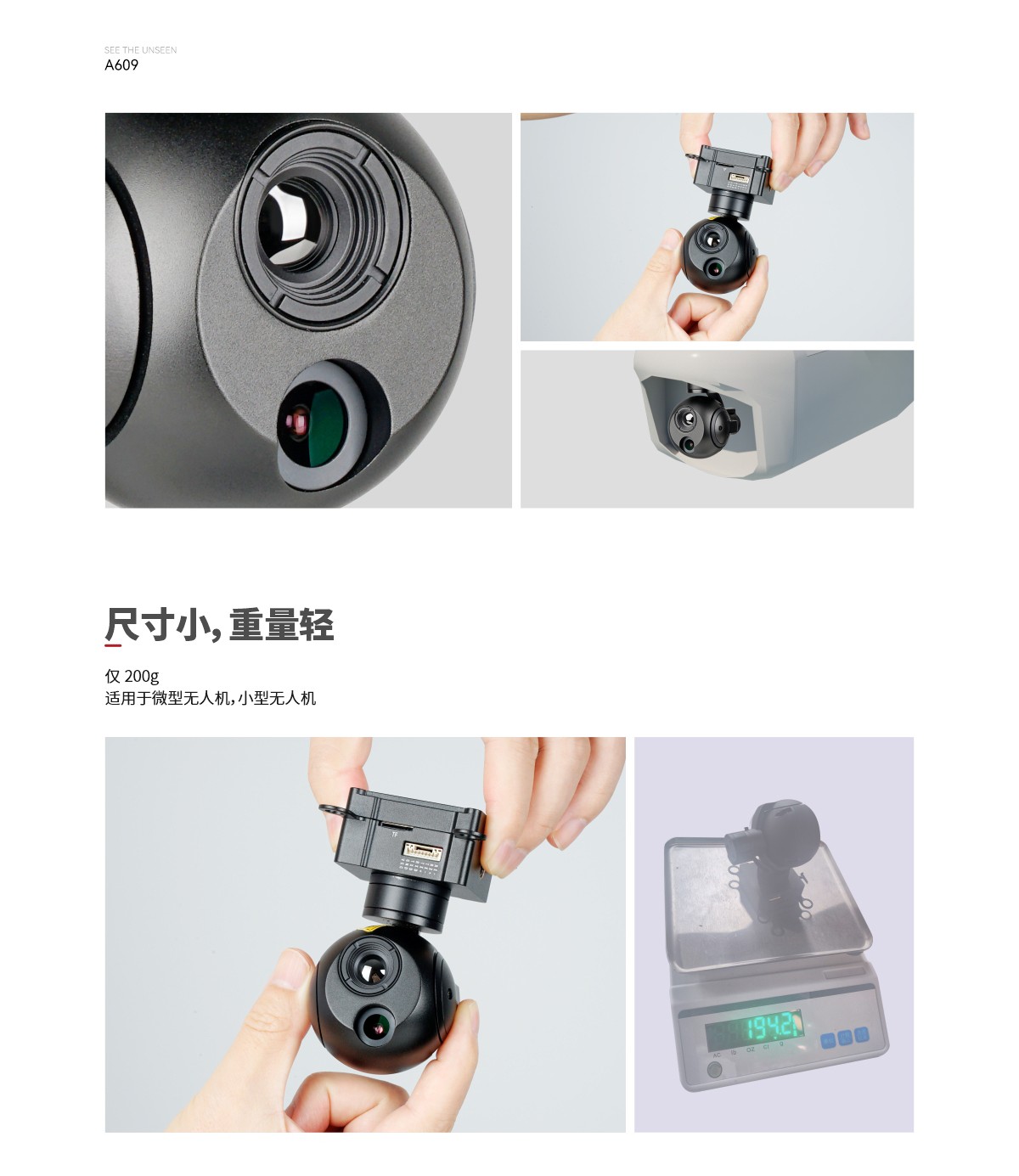 A609 轻量级三轴微距定焦镜头EO/IR AI跟踪云台摄像头