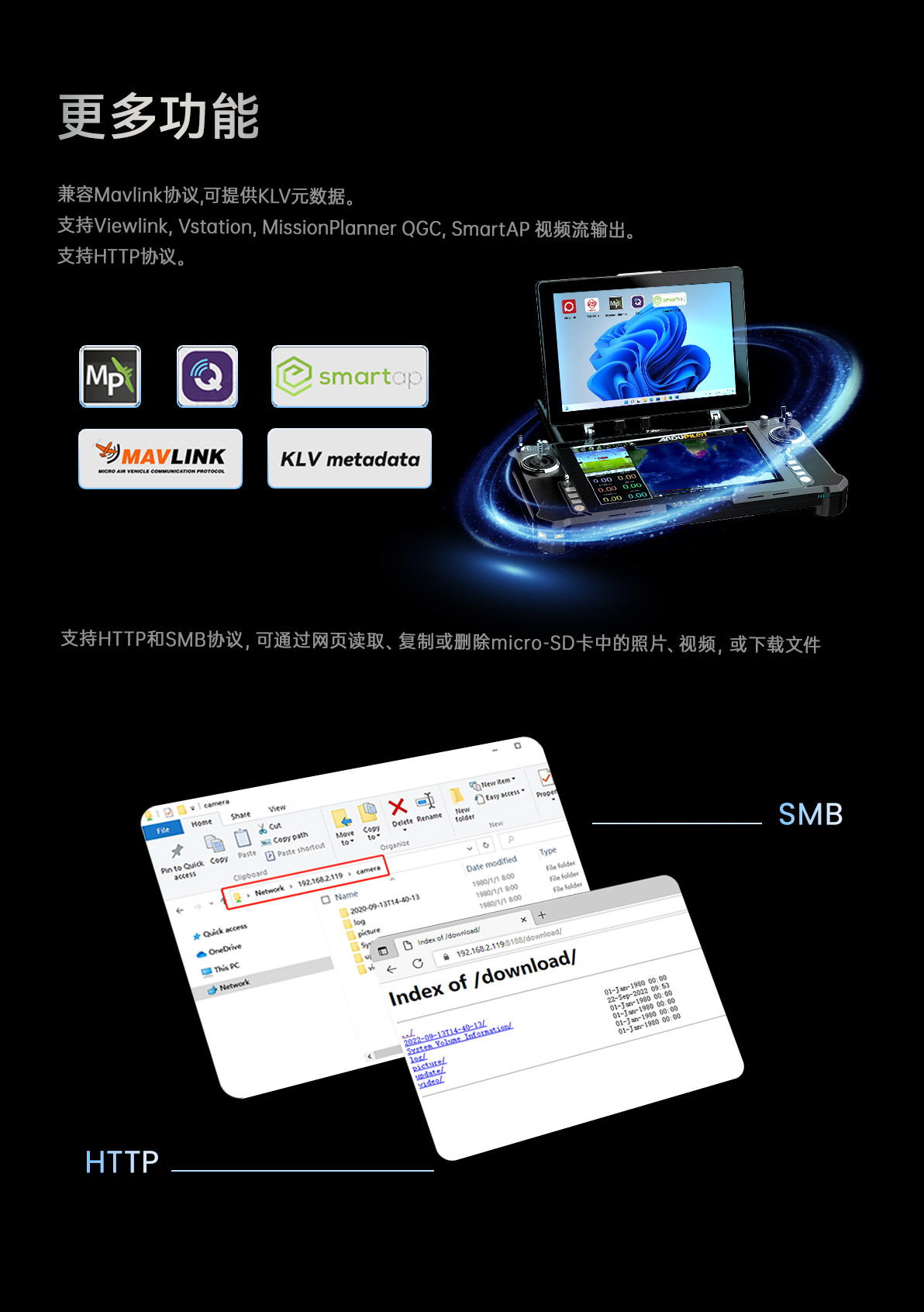 | 控制方式 | PWM / UART / S.BUS / TCP / UDP |