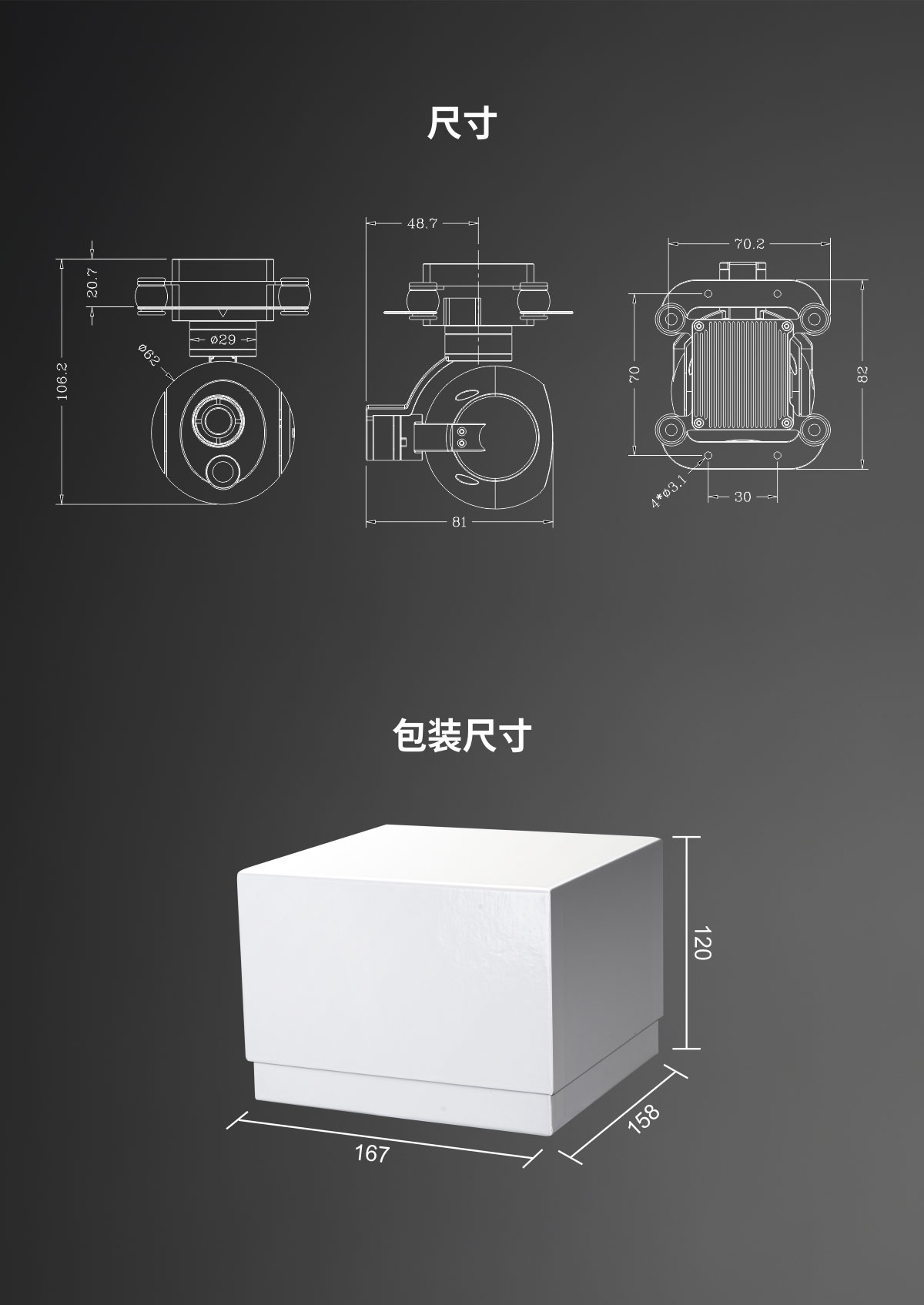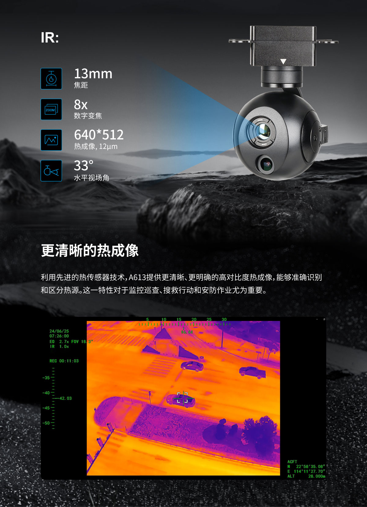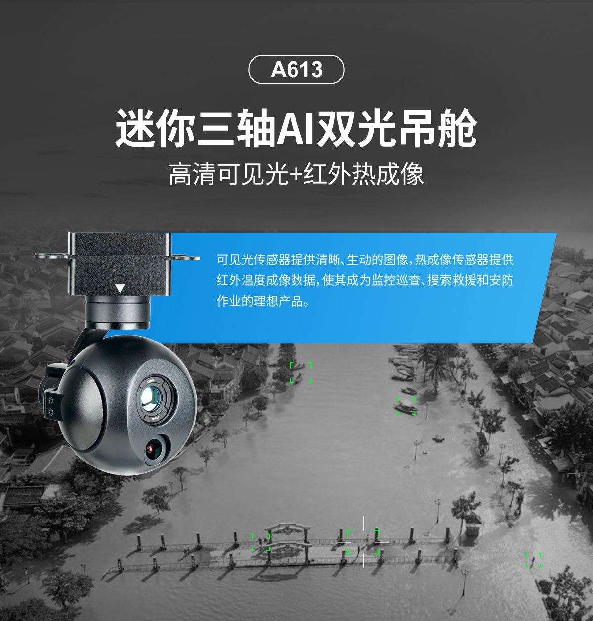 迷你三轴AI双光吊舱A613 高清可见光+红外热成像