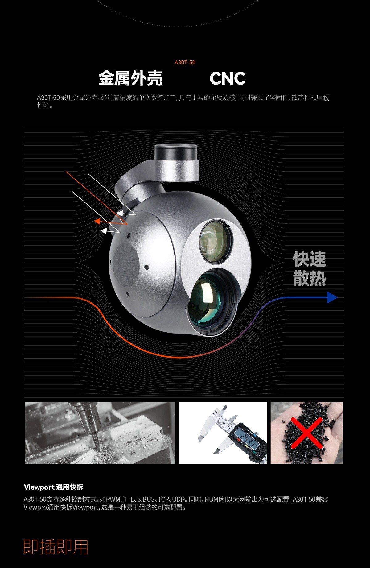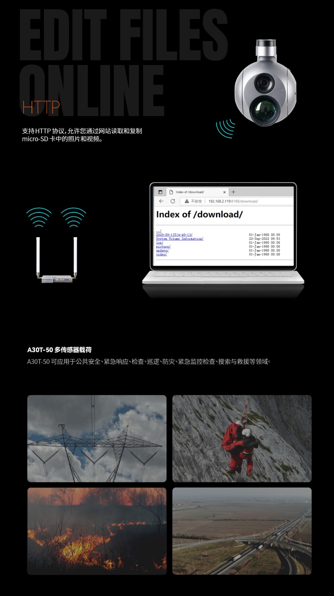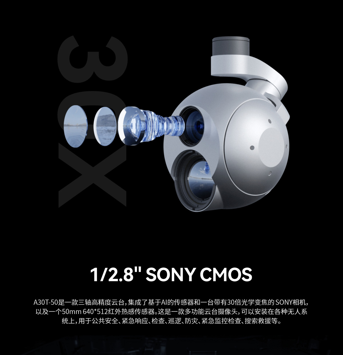 A30T-50 30倍光电/红外云台相机,AI自动识别和目标跟踪功能吊舱
