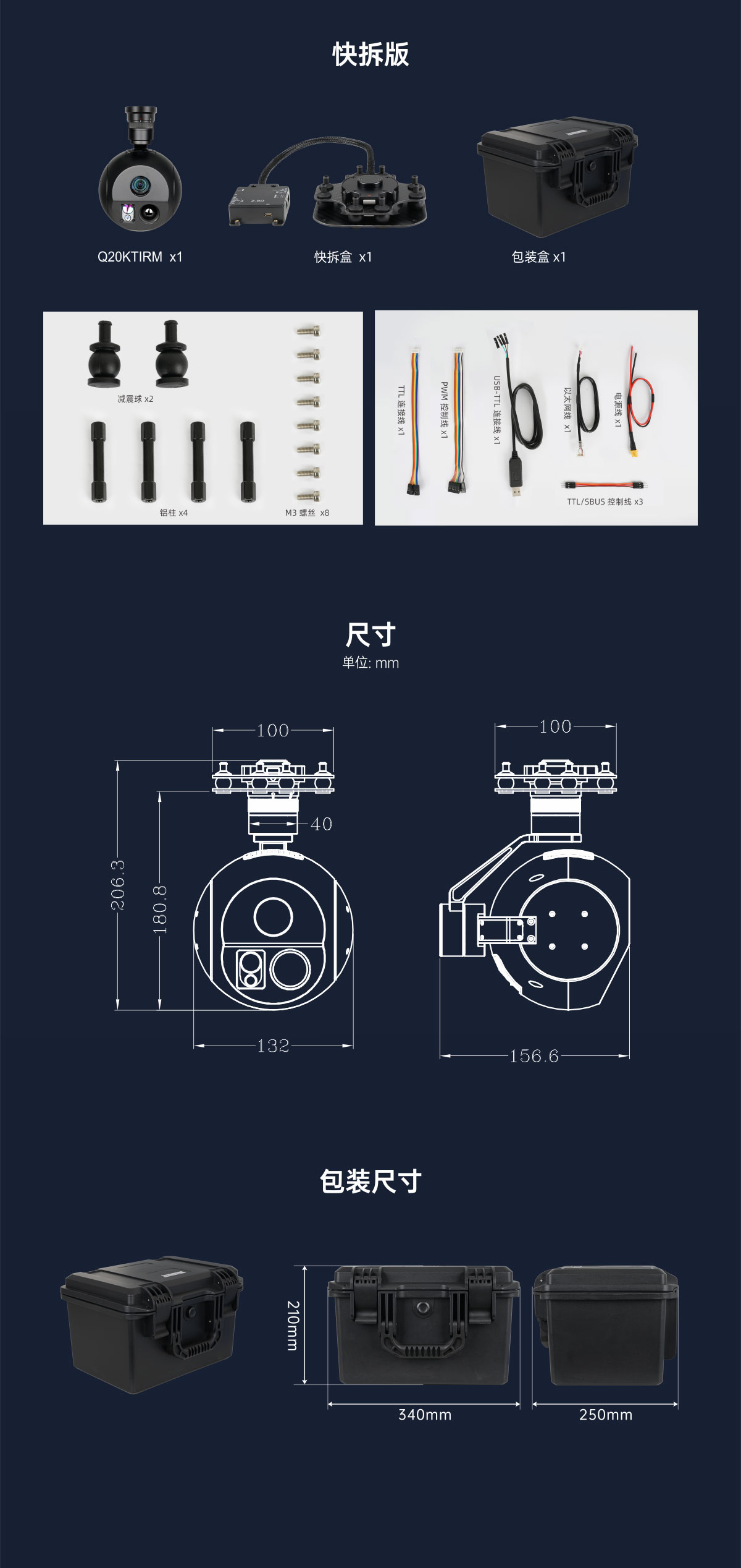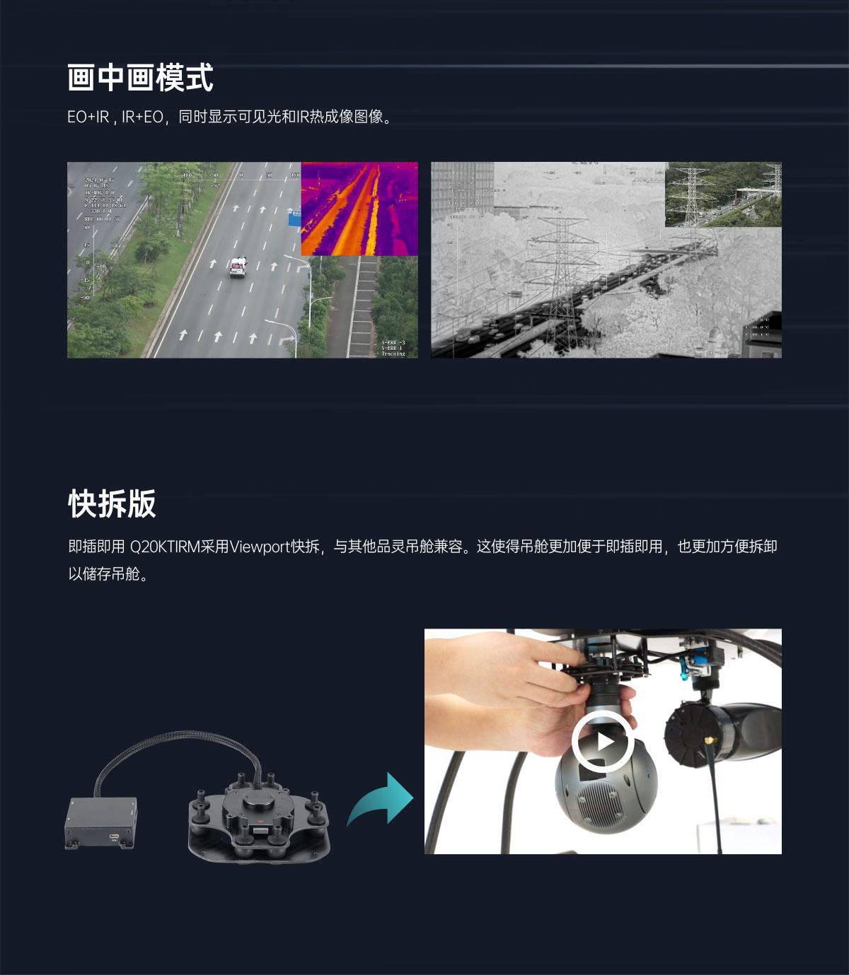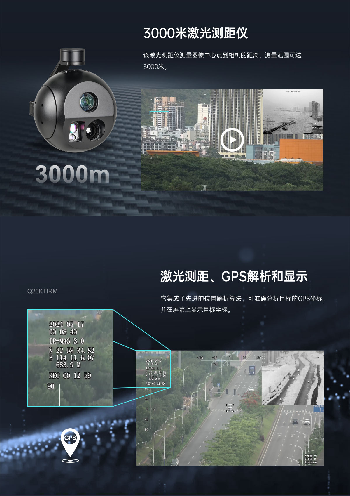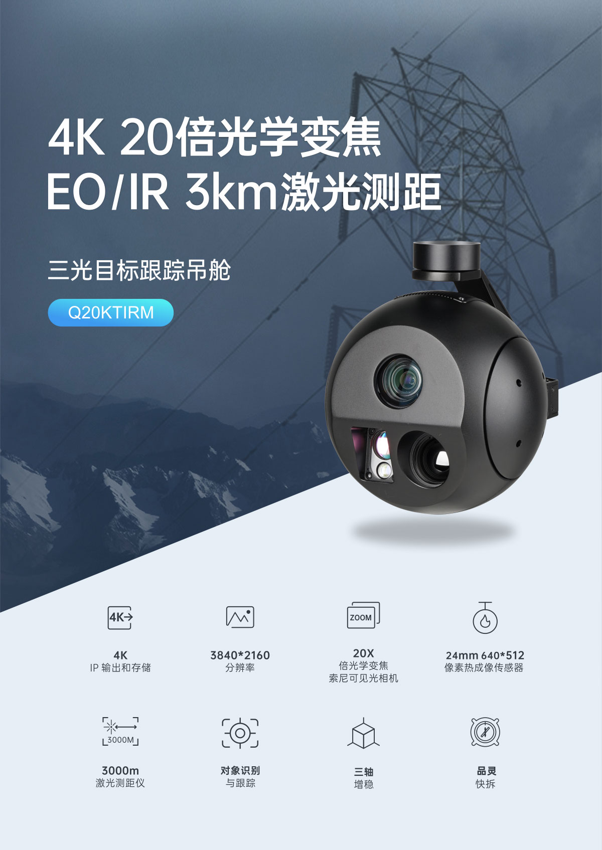 Q20KTIRM 4K 20倍光学变焦 EO/IR 3km 激光测距 三光目标跟踪吊舱