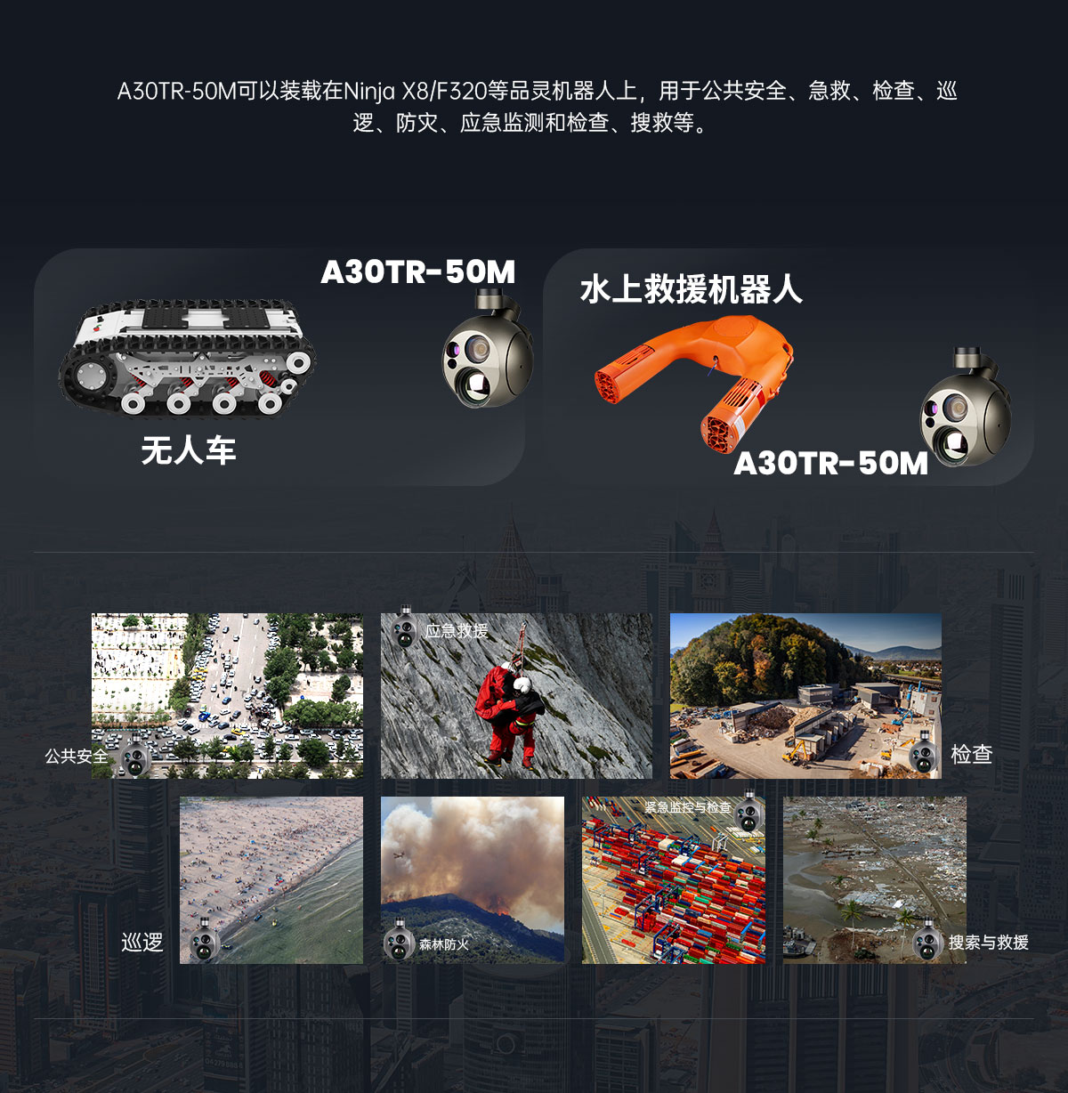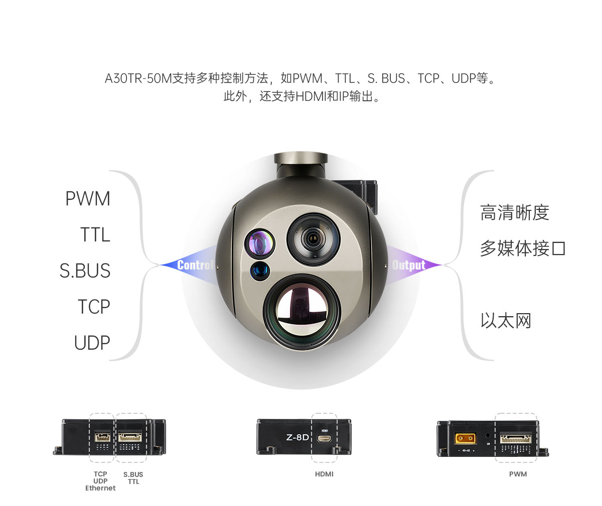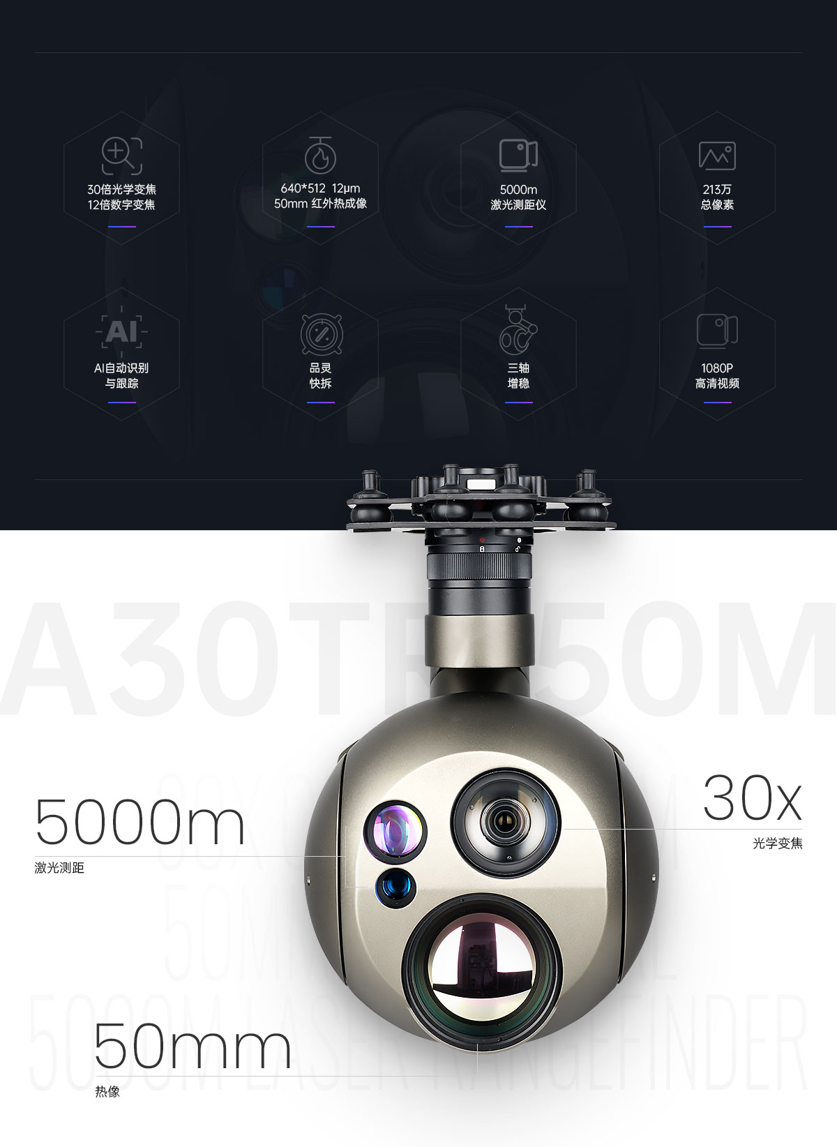 A30TR-50M 5KM激光测距吊舱 EO/IR相机 AI自动识别与跟踪功能
