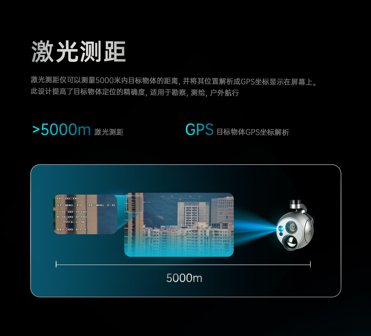 | 有效距离 | 通视条件下能见度不低于 8km,漫反射率≥0.3,湿度≤80%, 对车辆(2.3m×2.3m 目标)测距距离≥3km; 对人员(1.75m×0.75m 目标)测距距离≥1.5km; 对大目标(楼房)测距距离≥5km |