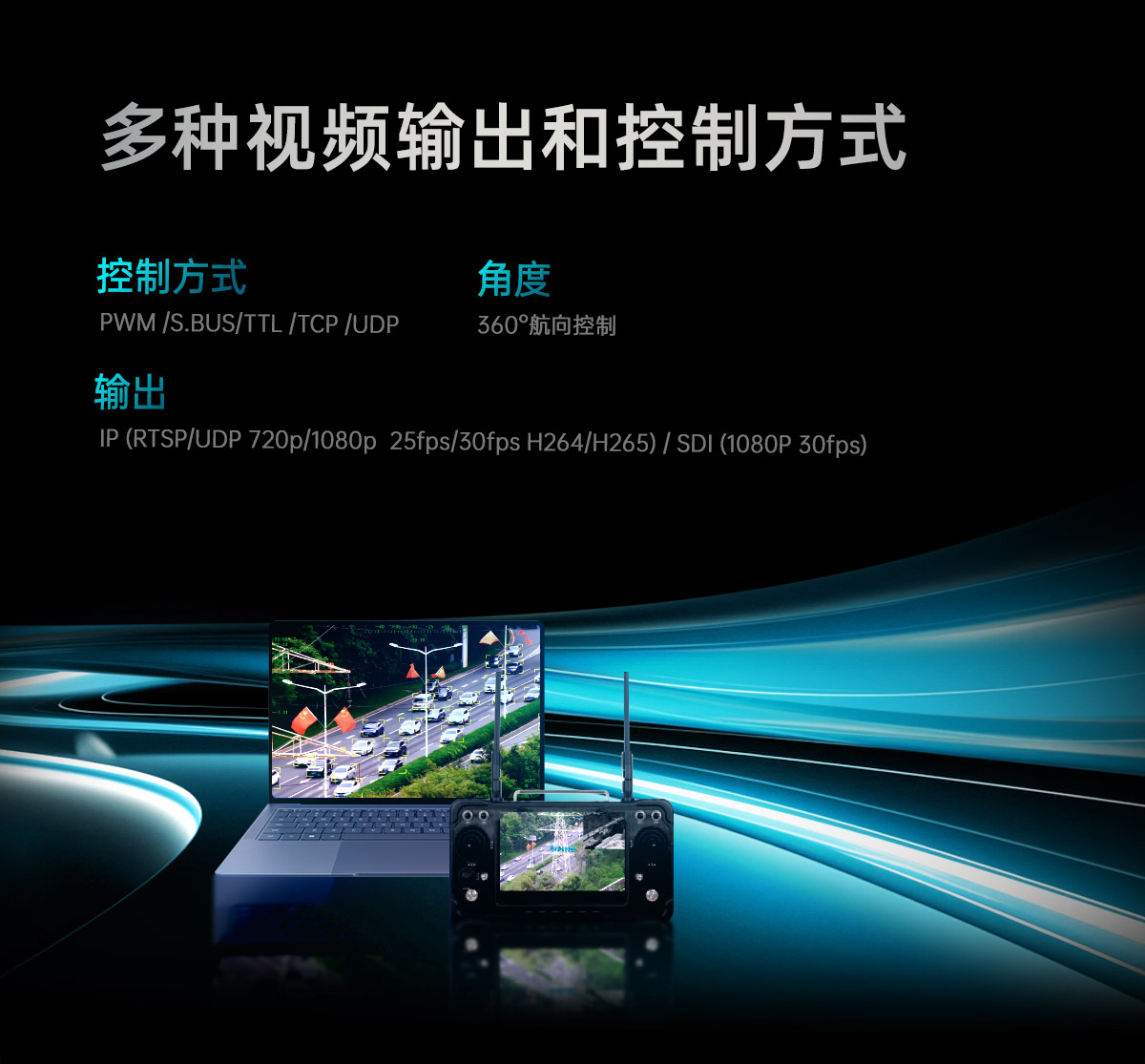 | 控制方式 | PWM / S.BUS / TTL / TCP / UDP |
