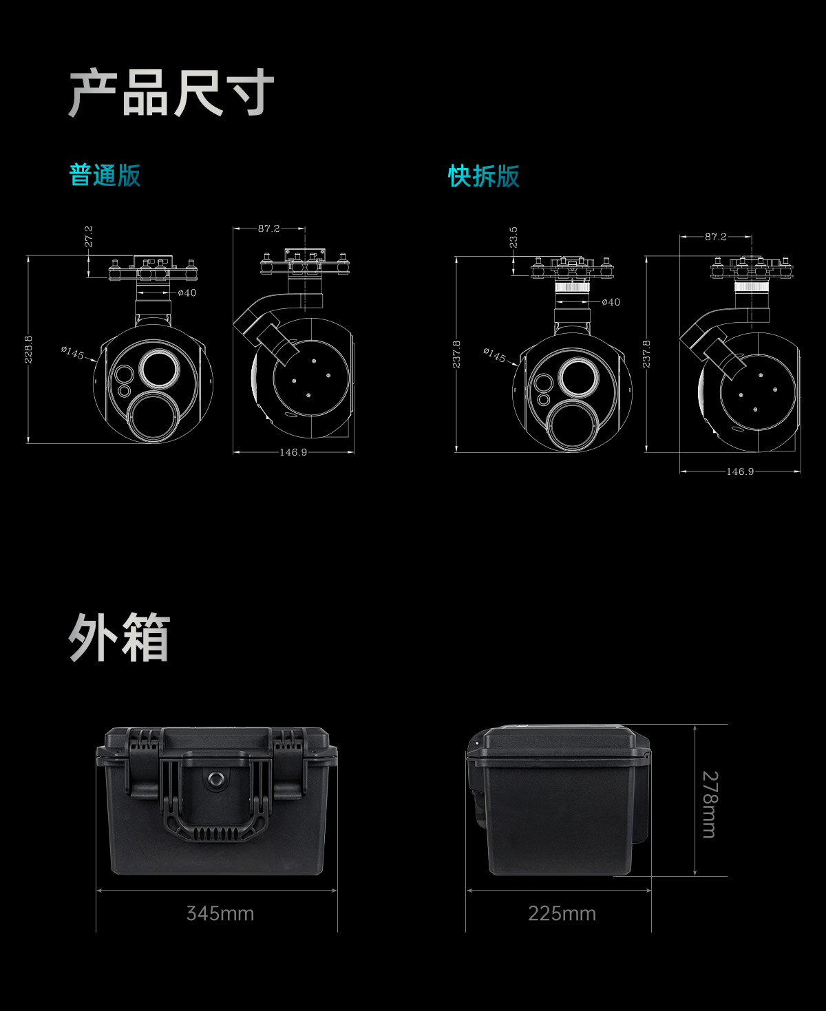 | 产品尺寸 | 146.9*145*228.8mm(普通版) / 146.9*145*237.8mm (快拆版包含快拆) |